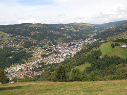 Au bout de quelques centaines de métres vous débouchez, par la droite, sur le mémorial de la guerre 40-45 avec en contre bas la grande statue. Très belles vues sur Cornimont. Aire de pique nique possible.